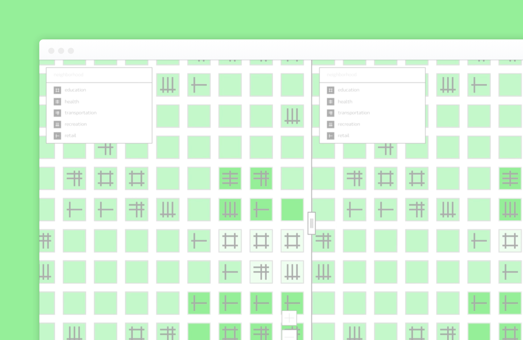 Data visualization that faciliates the discovery of correlations between a neighborhood's characteristics and property sales