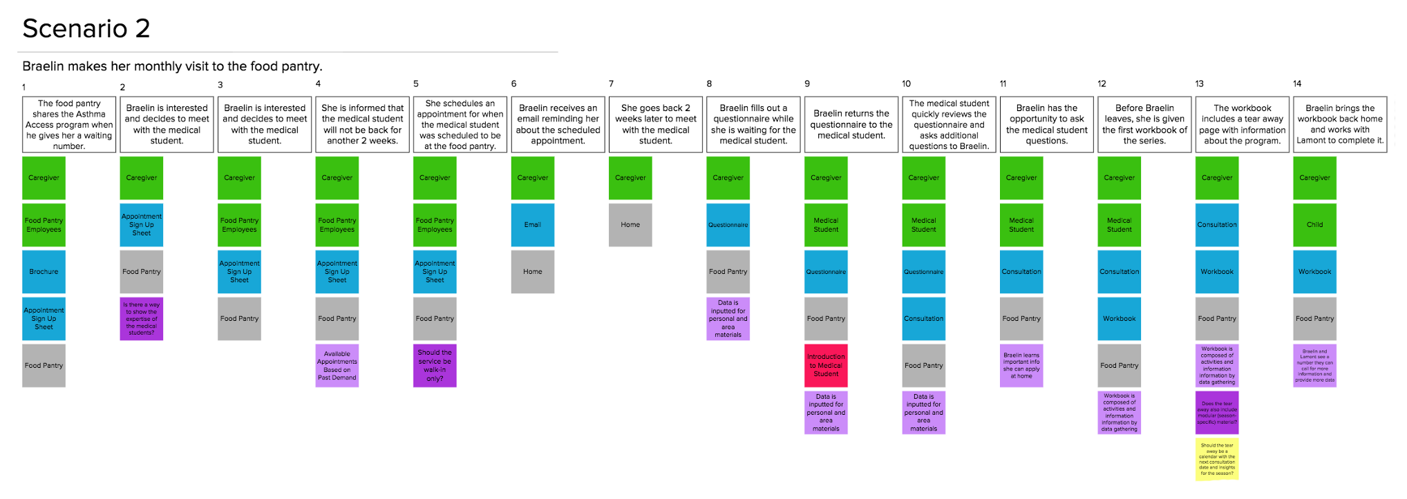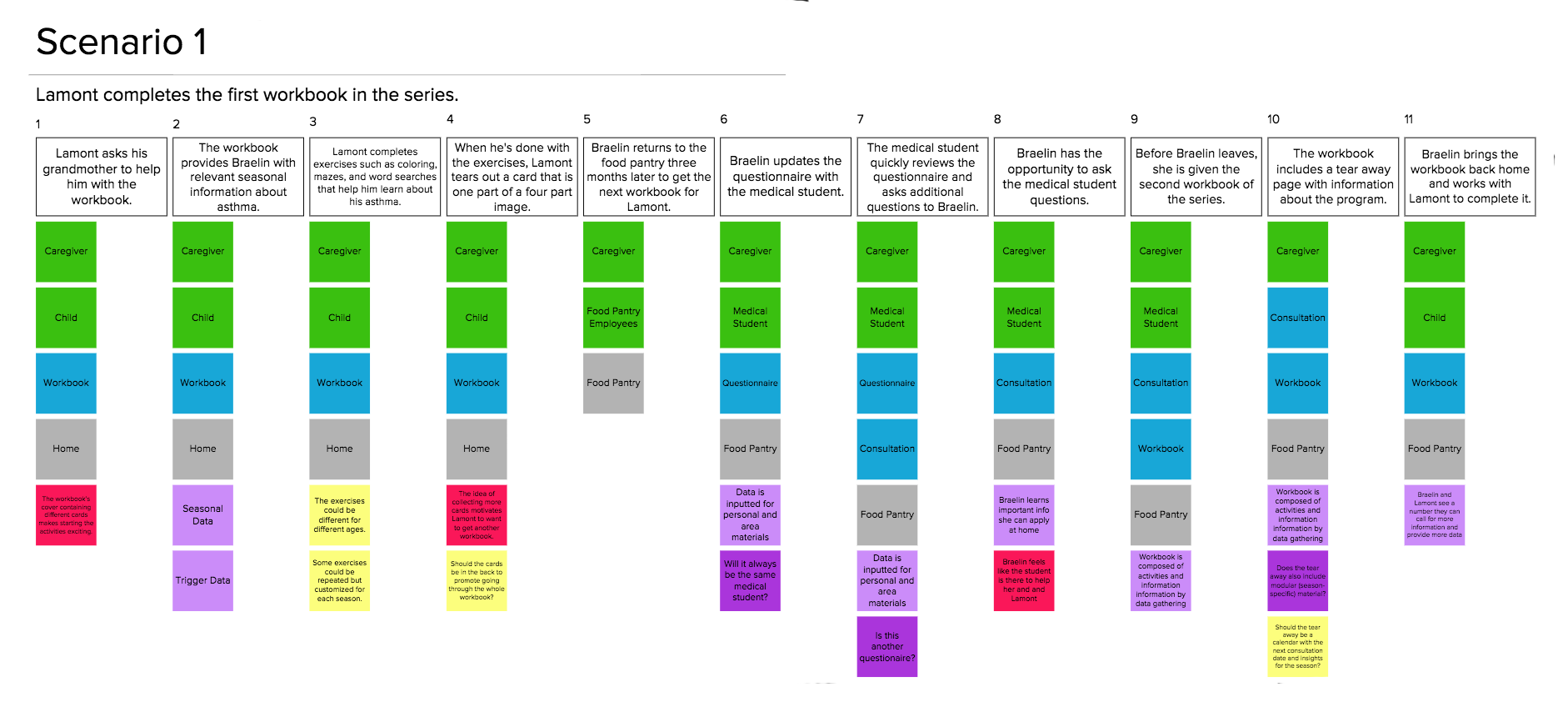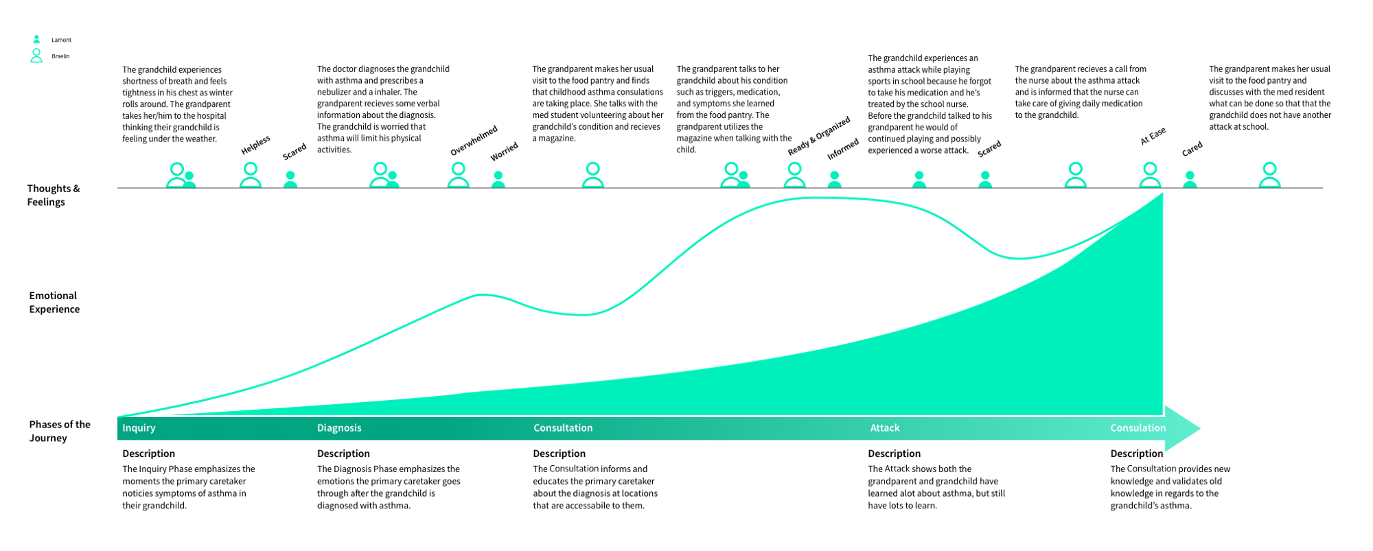 We also created a journey map to visualize Braelin and Lamont's (a grandmother and grandchild) interactions with the Asthma Connect program.