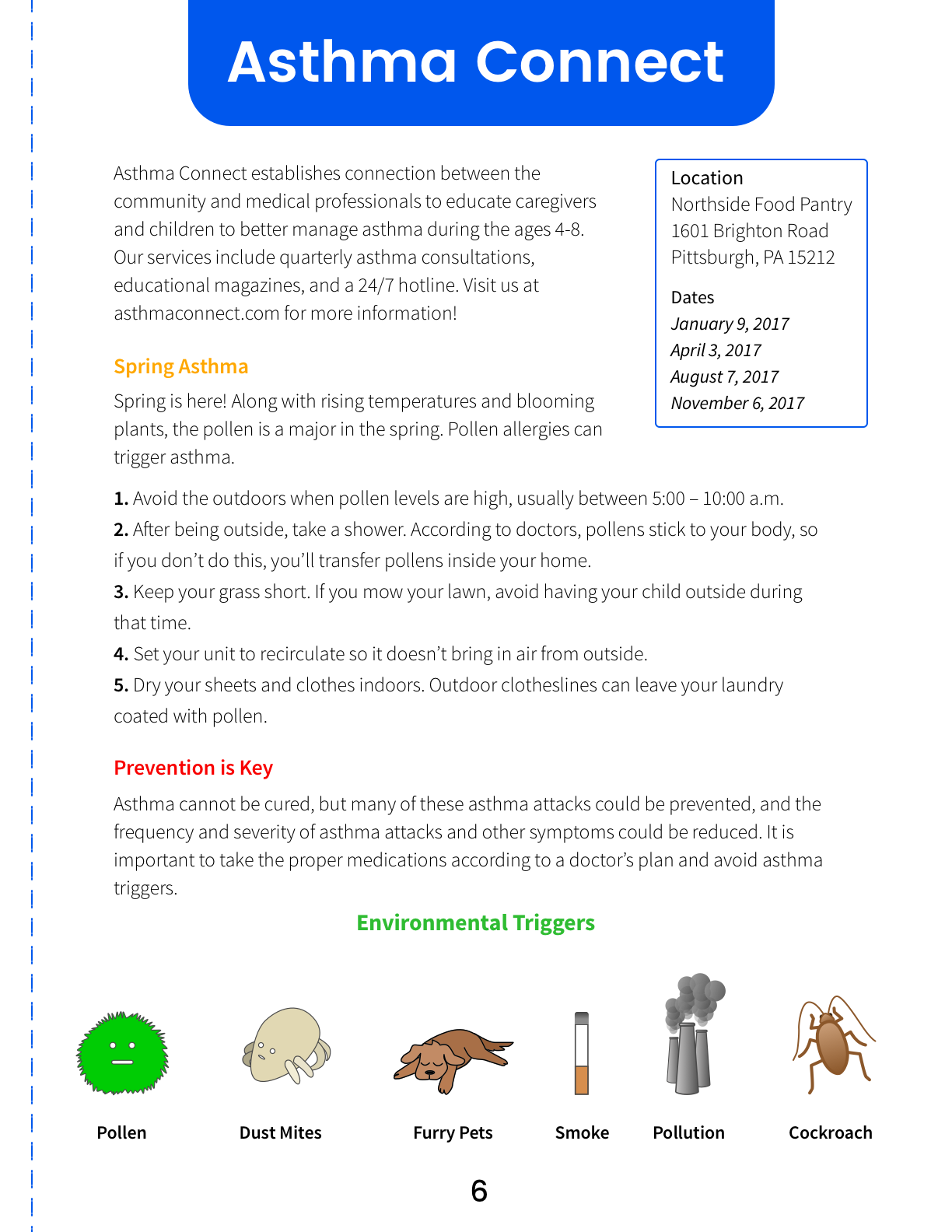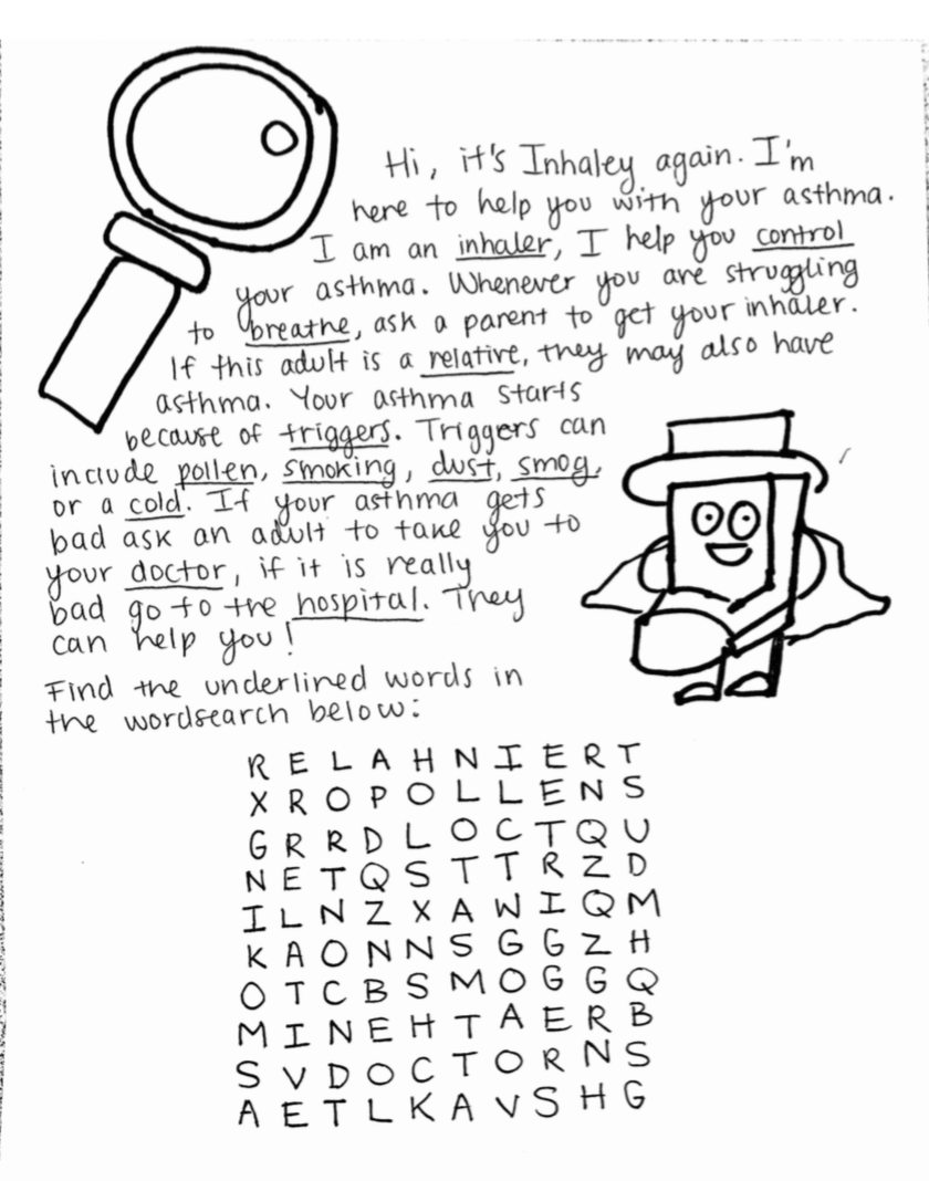 We have a modular children's magazine. Multiple versions are created based on age, the season, and different regions of the country. Grandparents and their children can work on magazine activities together. These magazines are given to grandparents at their consultation or can be ordered through the Asthma Connect website.