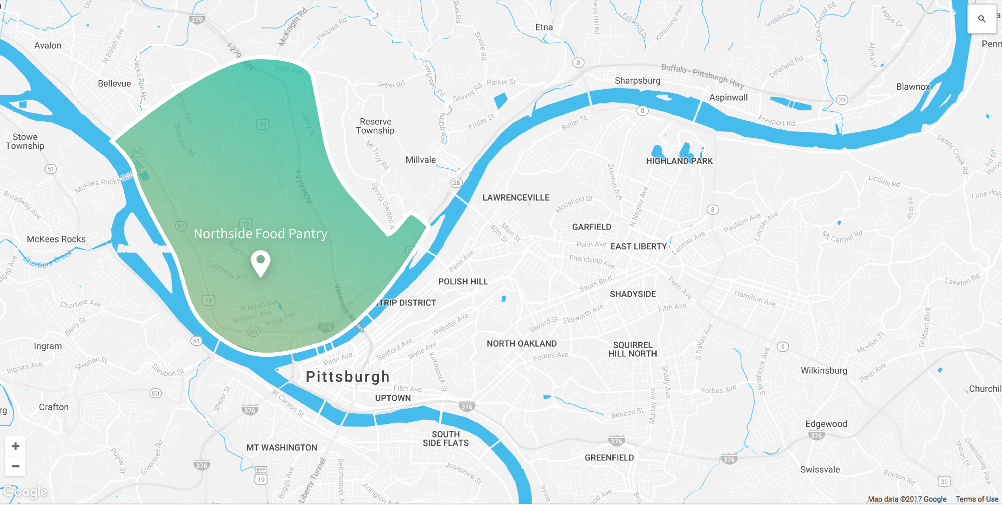 In our case, we focused on the Northside Food Pantry for our research. The Northside Food Pantry serves primarily seniors, veterans and families who live in the 15212, 15214 and 15233 zip codes. These zip codes have larger minority populations than average for Pittsburgh.