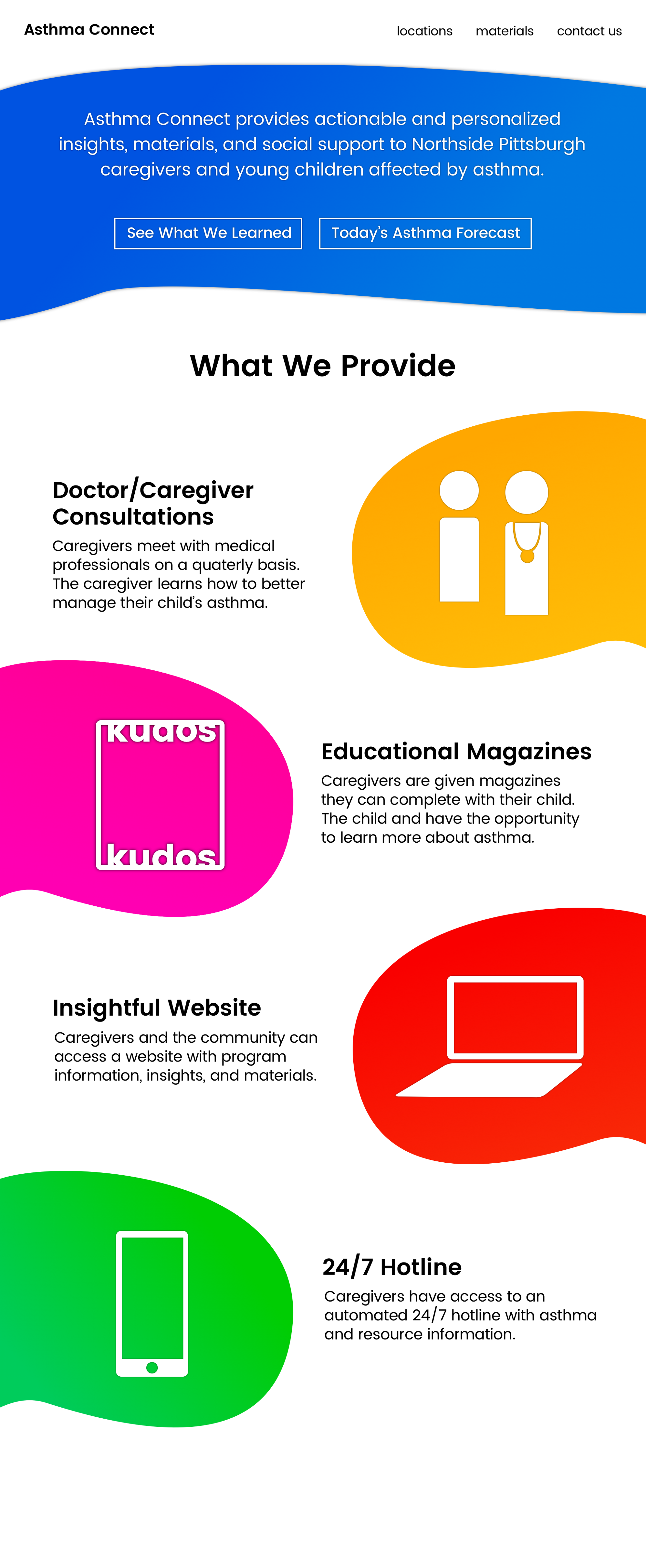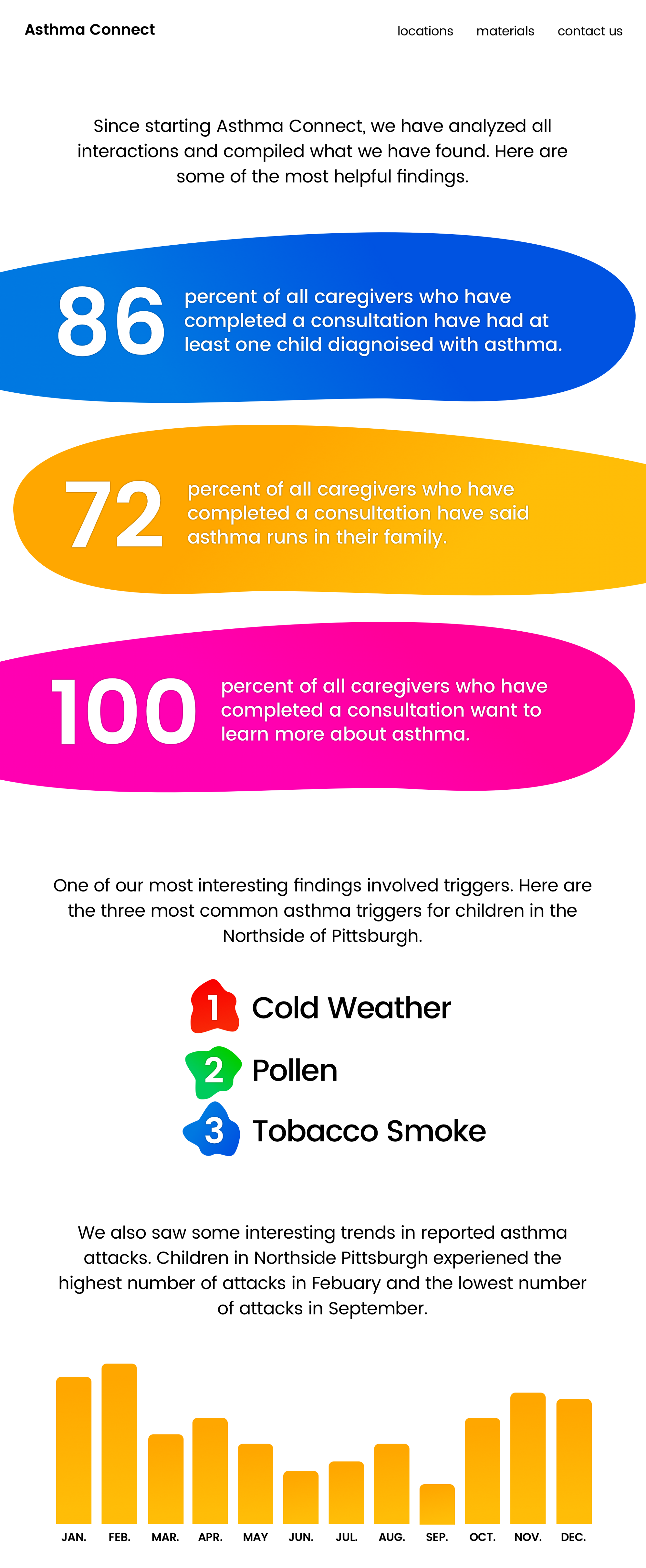 Lastly, we created a general facing website. The website provides childhood asthma information as well as regularly updated insights and data based on what we have learned through in-person consultations.
