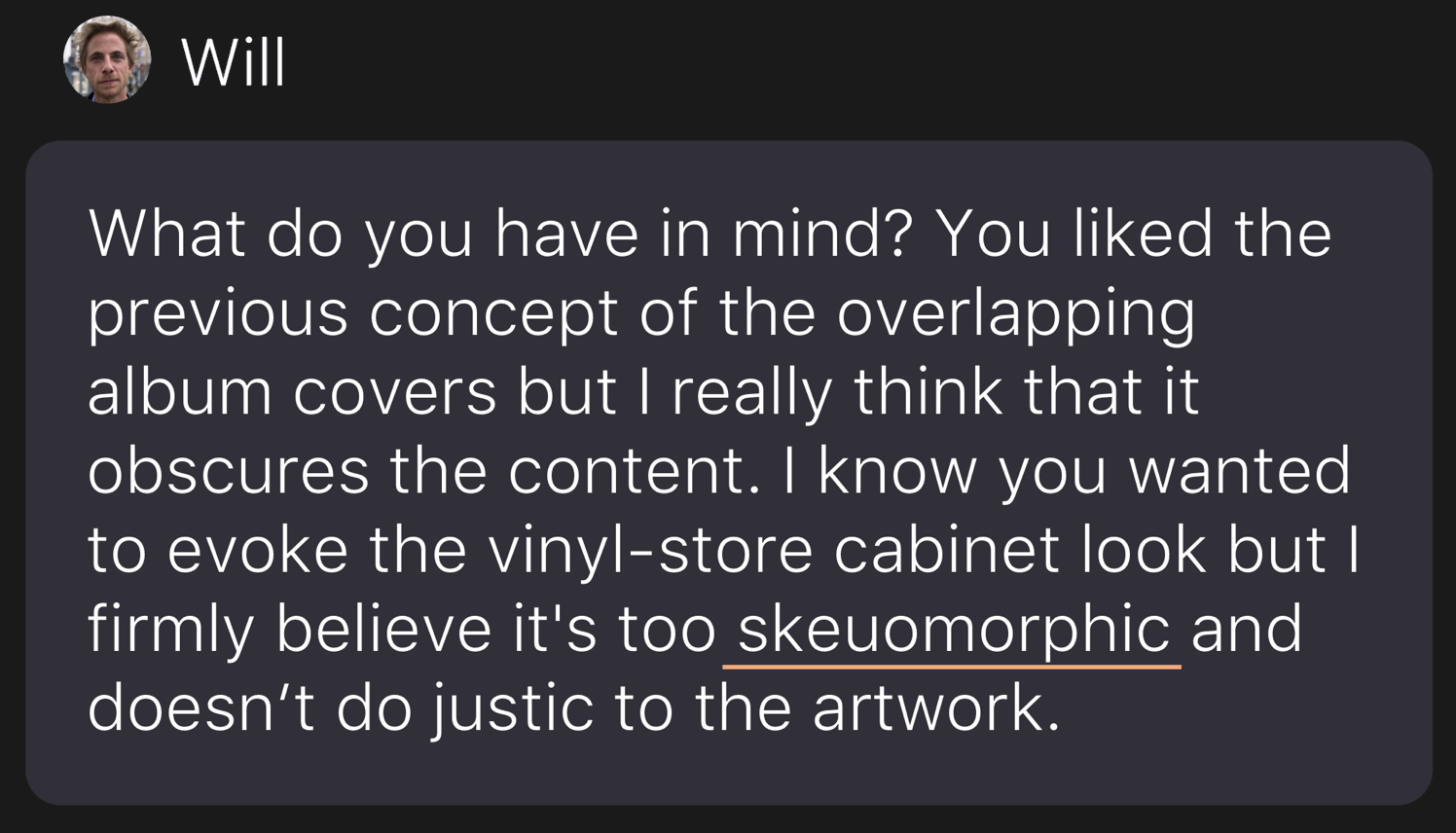 We spoke about the usefulness of having the entire conversation surveyable, and how it might be explorable after-the-fact, for analysis.