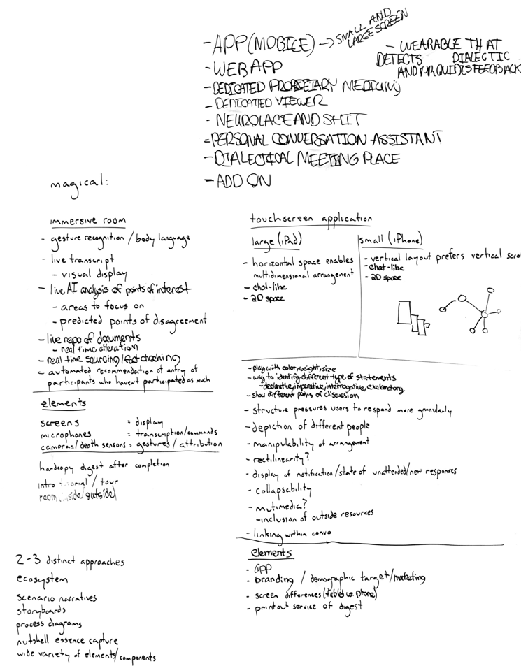 After coming up with some more developed concepts we presented them to Ahmed Ansari, a doctorate student at Carnegie Mellon's School of Design, and had a comprehensive discussion about the dynamics of digital conversation.