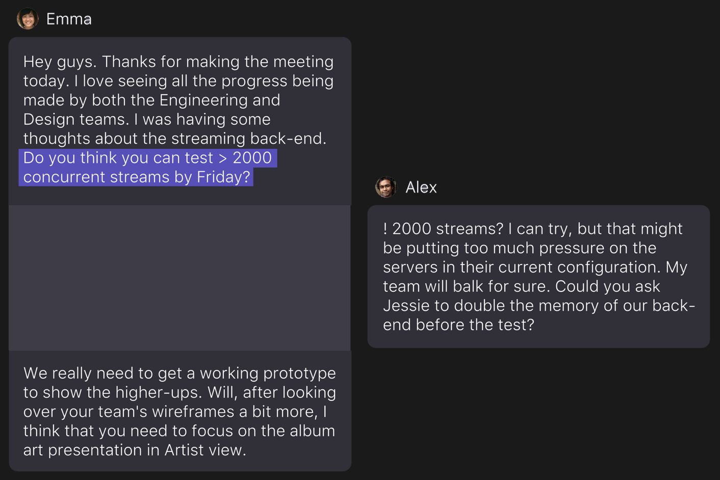 Rather than replying to the whole of a previous message (such as on Facebook, Reddit, etc.), a reply is always tied to a specific, highlighted section of a message. By doing this, Converge elicits more explicit topic demarcation.