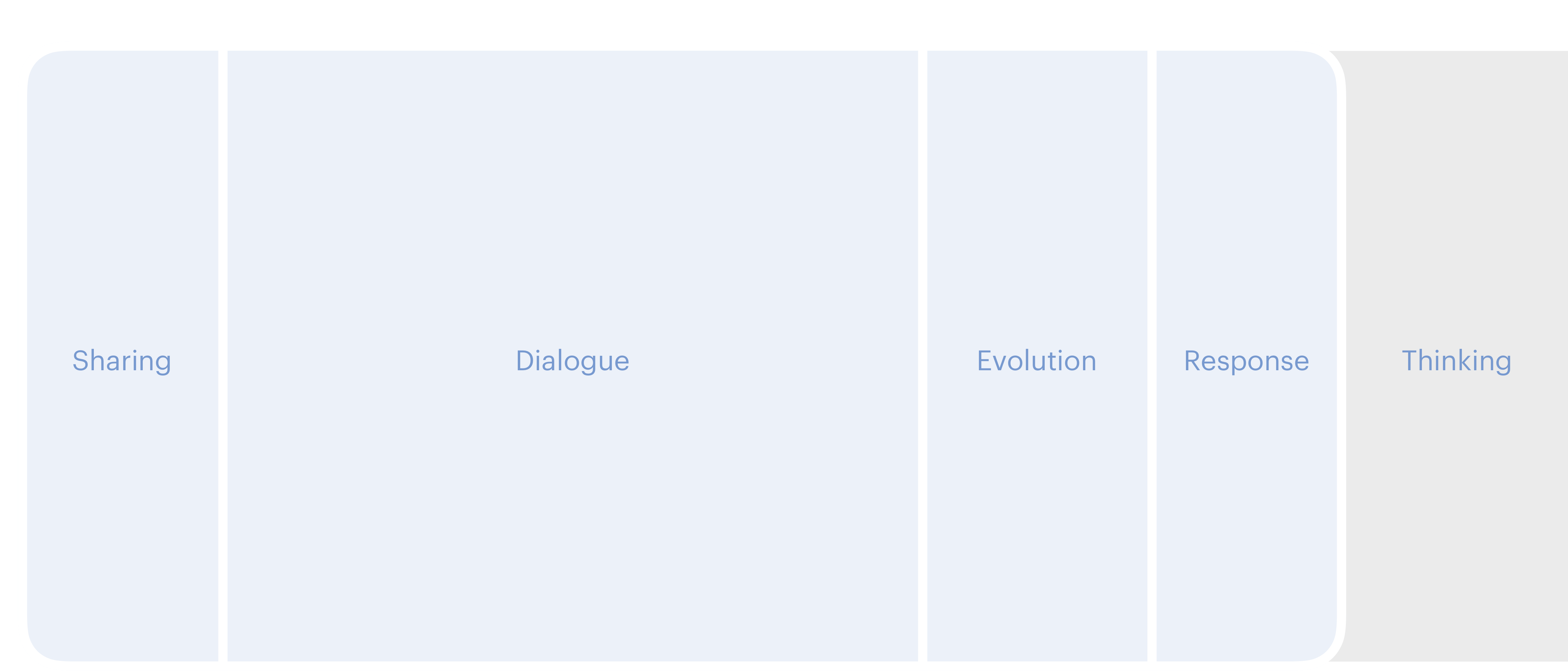 With my review of the literature in hand, I created a model of intimate conversations derived from Dubberly and Pangaro's "Process of Conversation" (Dubberly & Pangaro, 2009). This model divides a conversation between intimate partners into five different phases: