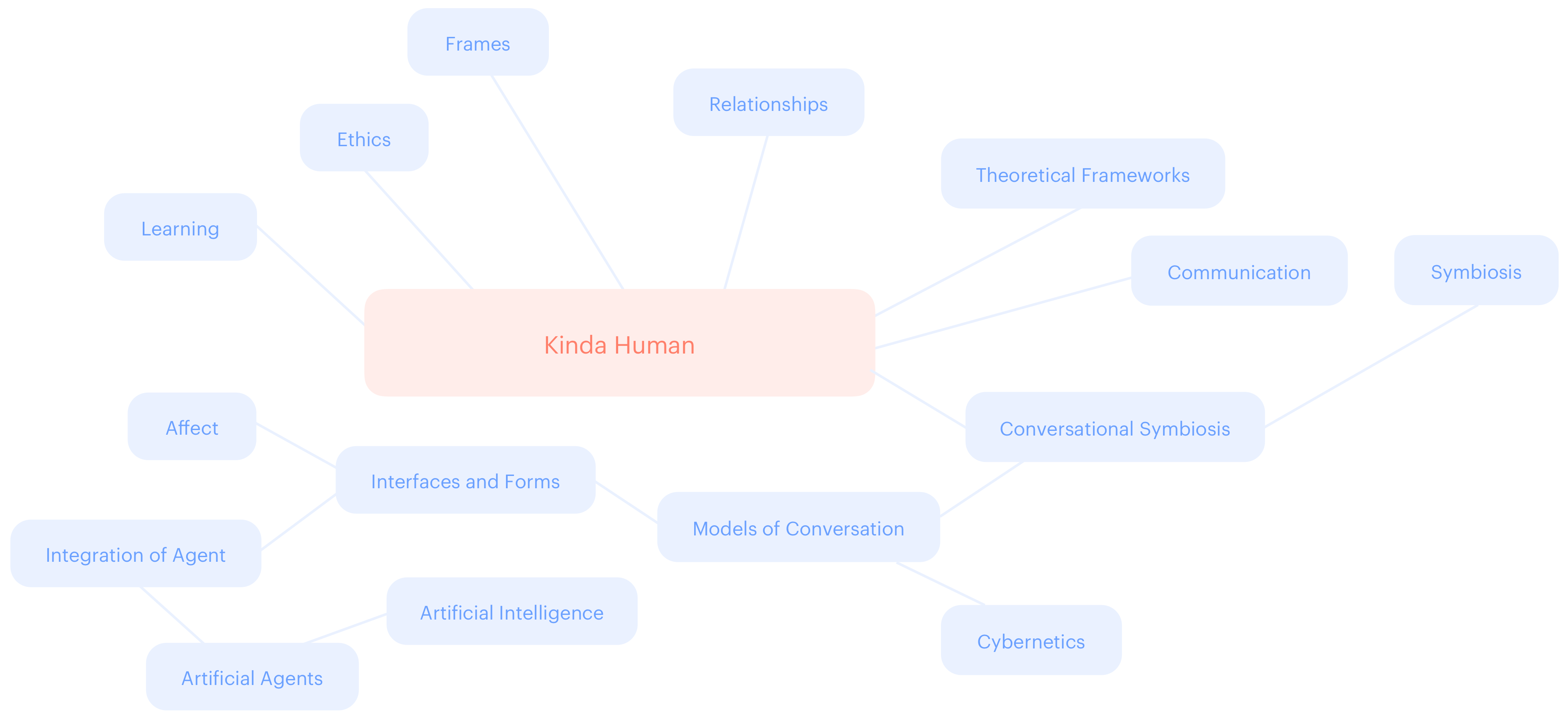 This literature review also informed my concept of conversational symbiosis. Conversational symbiosis is an intimate cooperation that embraces differences, takes advantage of competencies, and promotes a mutual understanding to augment the intellect of two or more dissimilar things in ways they can not achieve themselves. Conversational symbiosis served as my guiding principle throughout this project. Without conversational symbiosis, an artificial agent cannot effectively integrate into an experience centered around expression and understanding in intimate relationships.