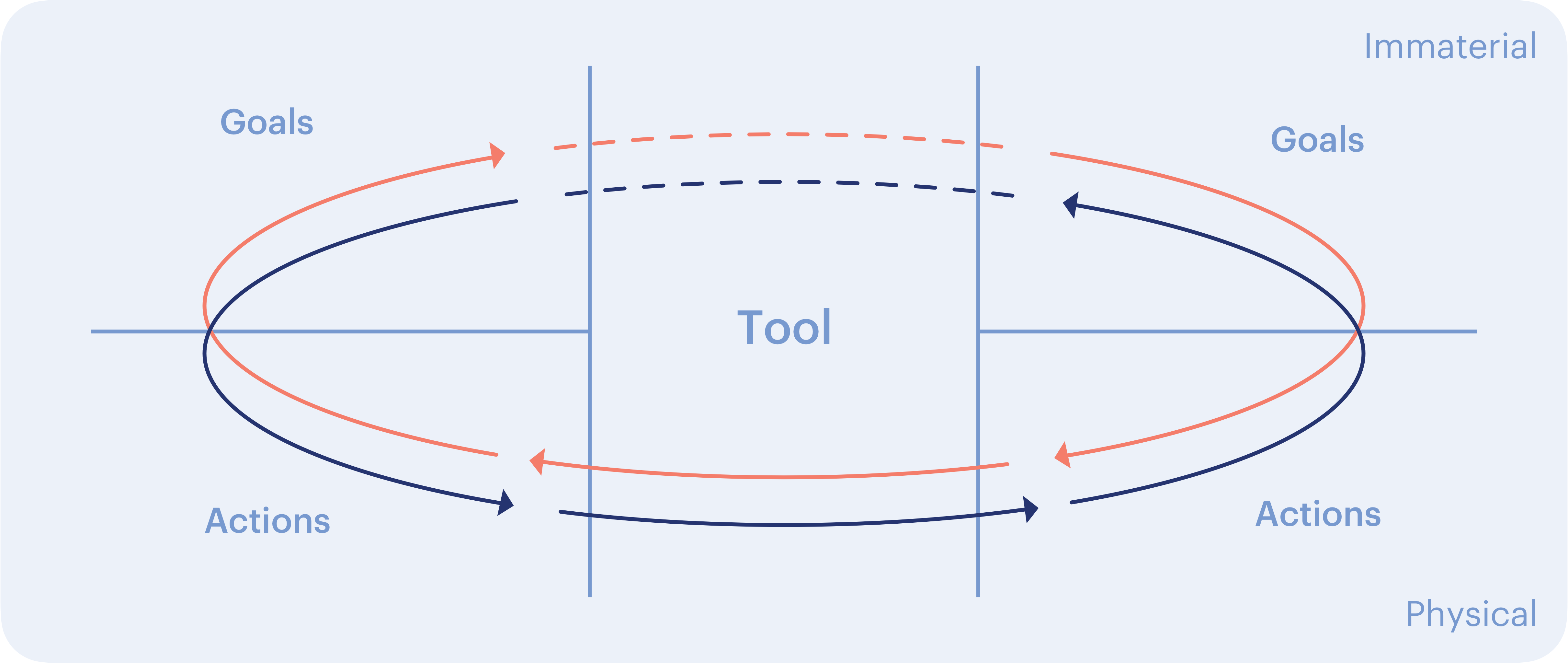 This model provided me with a map of potential points for intervention. This could include designing an experience for thinking and reflecting or constructing a message that moves from the immaterial to the material world.