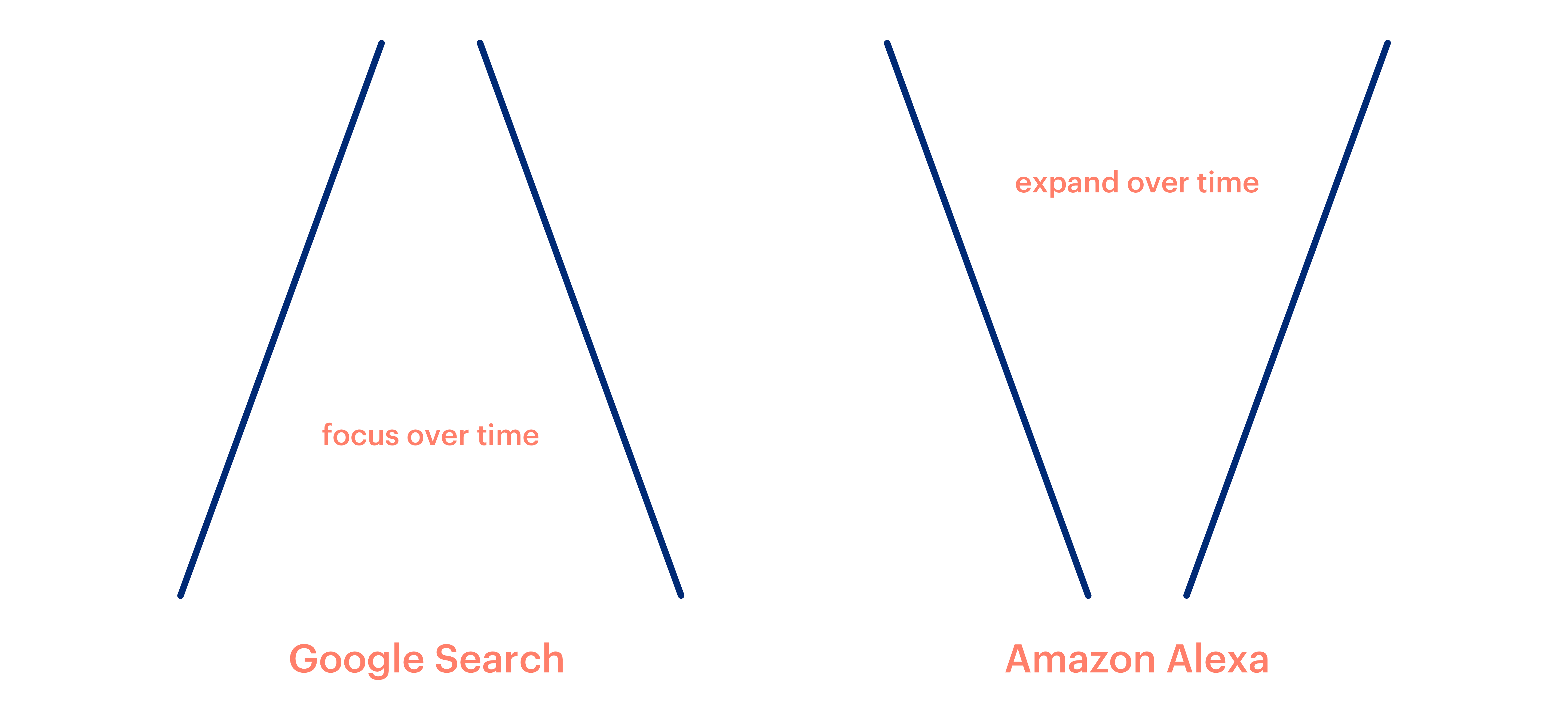 With Google, a participant's search focused over time. While with an Alexa, a participant's search expanded over time.