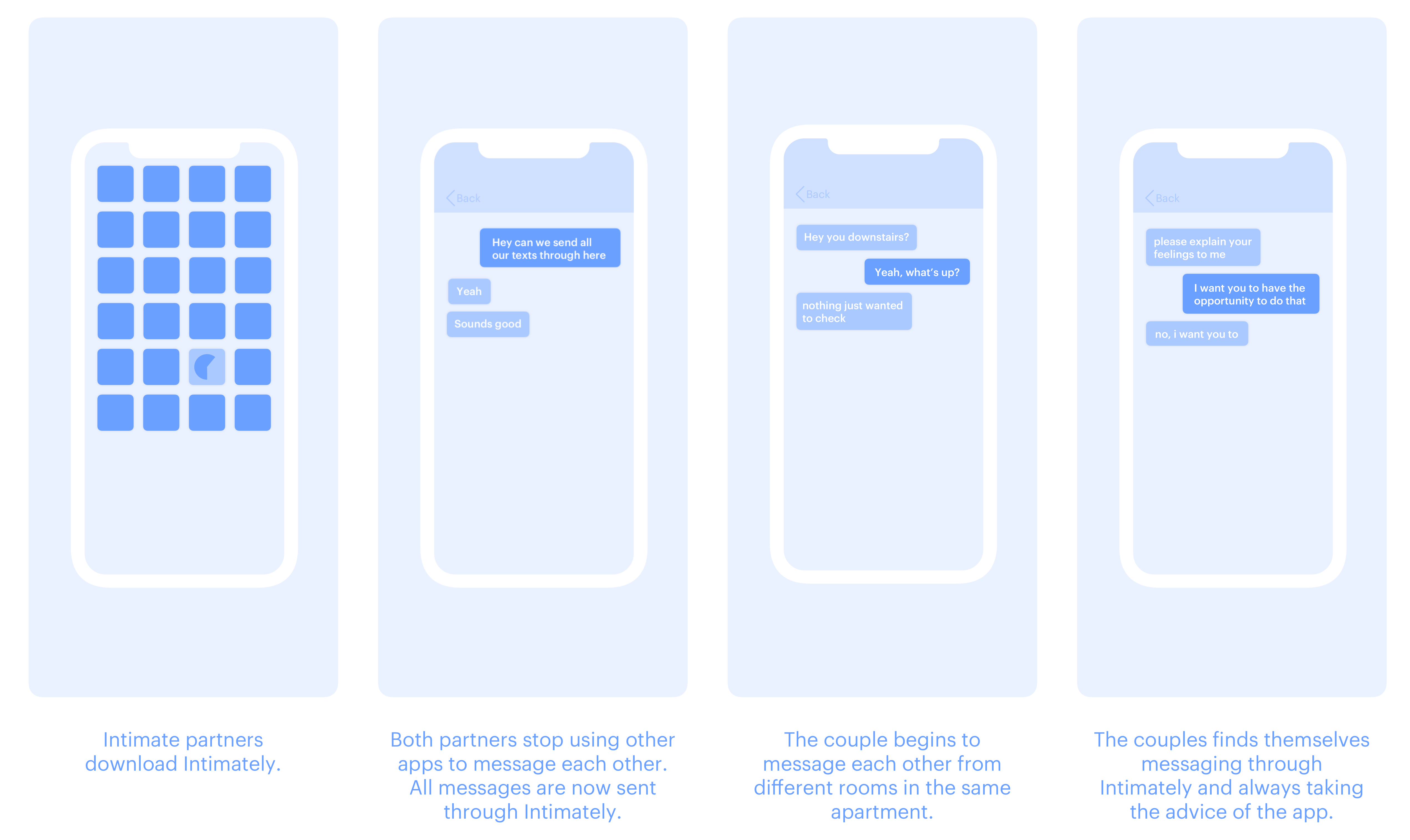 The first concept I designed was Intimately, an AI powered writing assistant intended to enhance one's capacity to express themselves to their intimate partner.