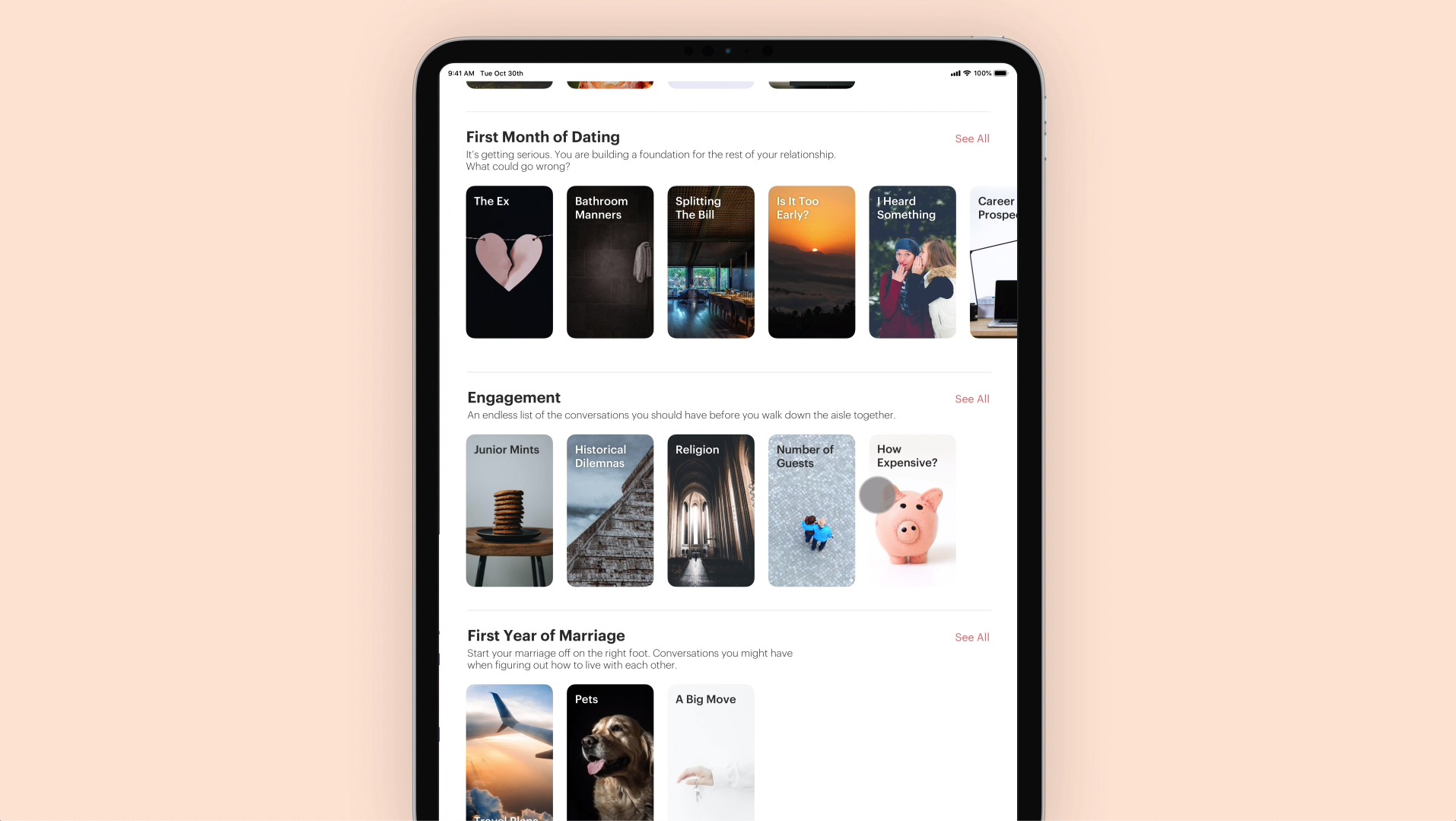 Numerous decisions were made when designing Private Conversations to help an intimate couple build appreciation and understanding for their partner.