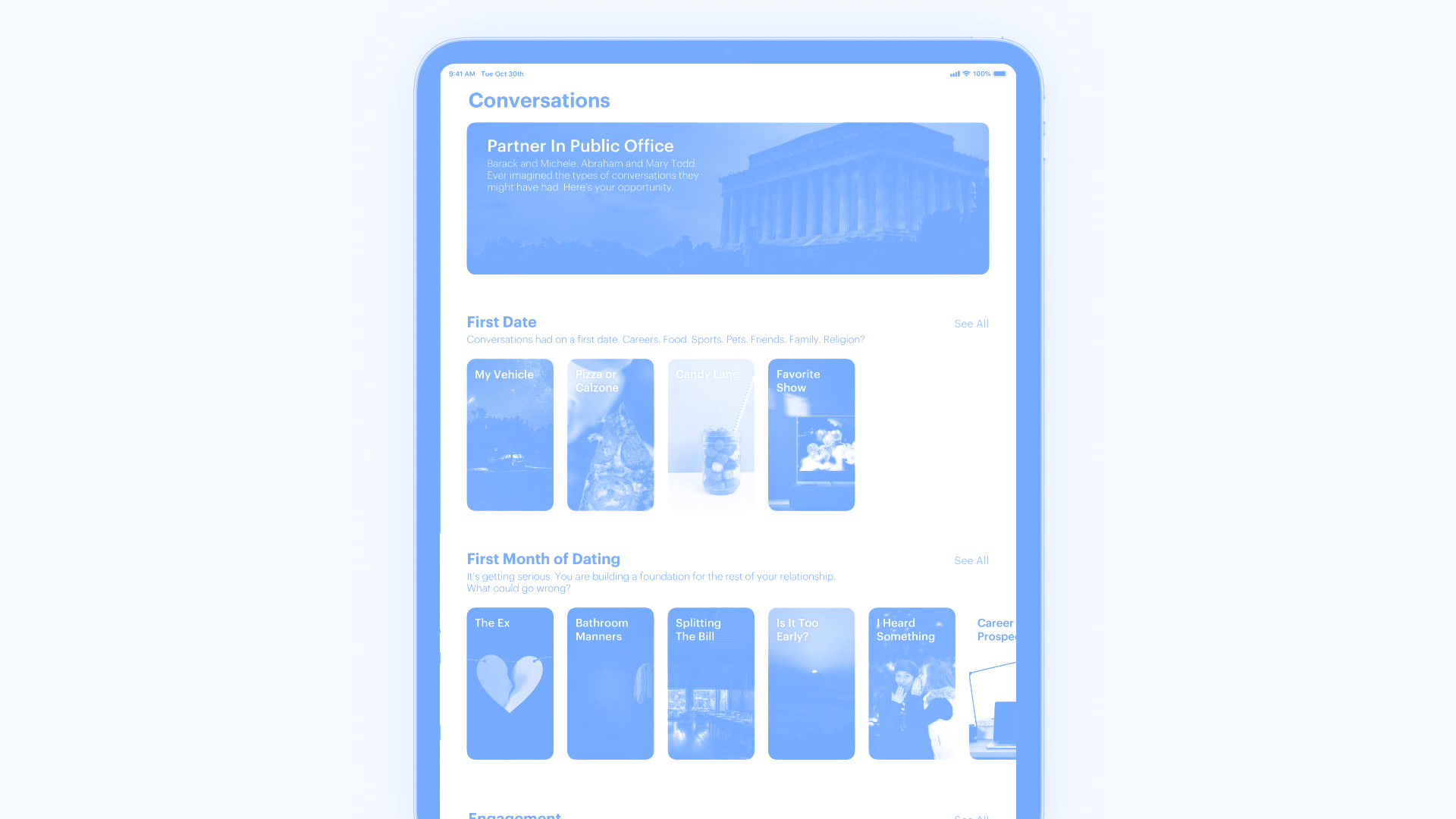 Today, many designers concern themselves with efficiency, effectiveness, and productivity when considering relationships between humans and artificial agents. While these three dimensions are essential to consider, they fail to embrace our humanity (i.e., our ability for self-expression and for understanding others, the emotional and intellectual mechanisms we employ, the vast differences in our makeup and experiences, our propensity to make the same errors more than once, and our idiosyncrasies) and present an opportunity for designers to consider dimensions present in our relationships that make us human. This thesis project explores two of those dimensions—expression and understanding—in the context of intimate relationships.