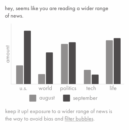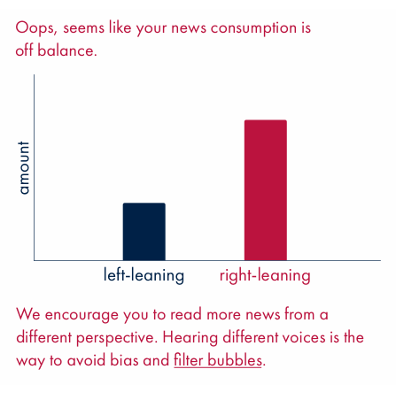 Charts within checkups would provide ample space to experiment with how to effectively engage with users about their news consumption and provide advice to users about how to diversify that news consumption.
