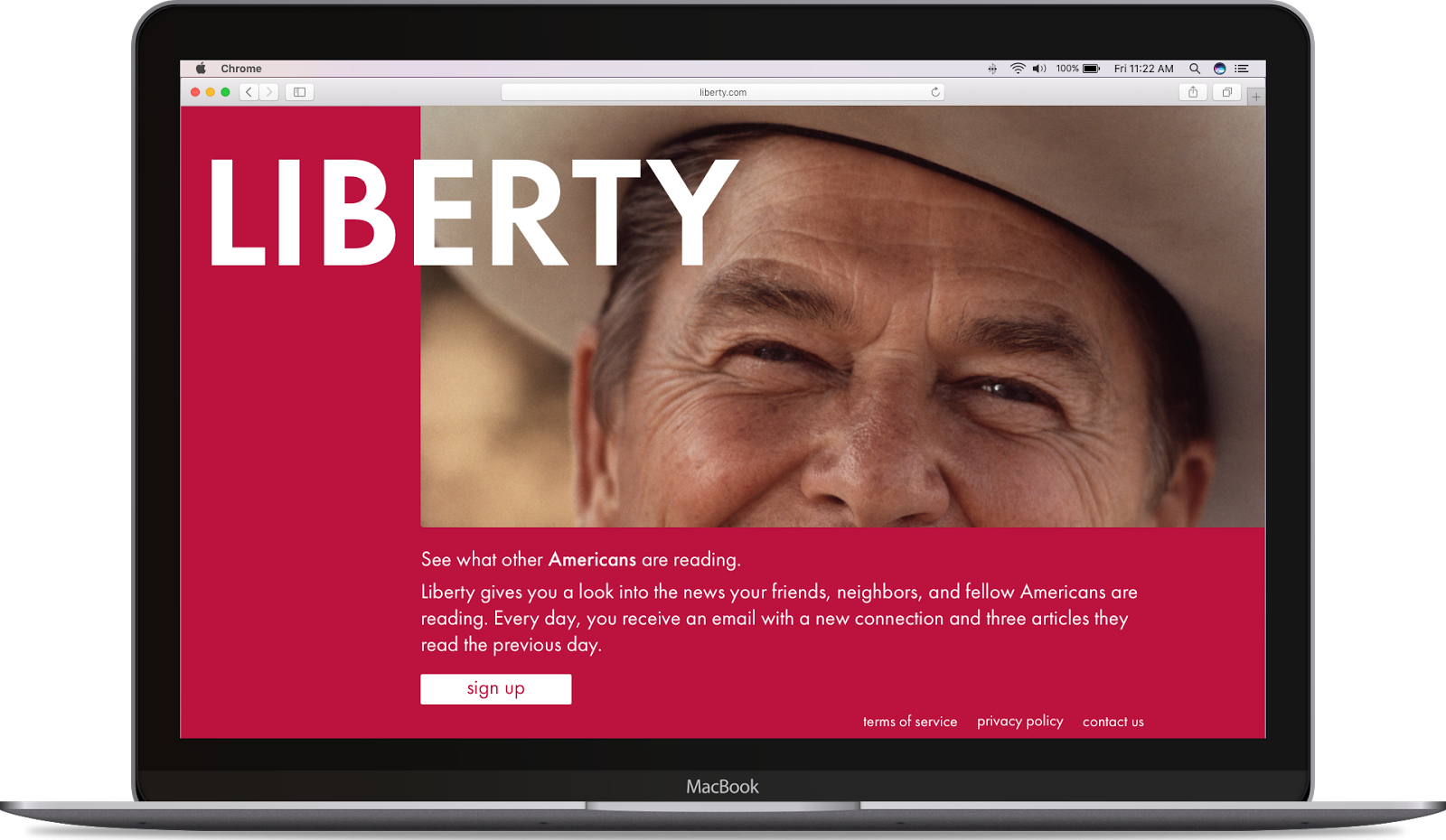 Take for example, Joe Jones a 50-year-old from Alabama who regularly visits Breitbart. MediaBridge targets Joe via Breitbart ads (MediaBridge targets users through the websites that they frequently browse) with messaging similar to "See what other Americans are reading." After clicking on an ad, Joe is directed to a customized web page visually geared towards more conservative audiences. After learning about and signing up for our intervention, Joe receives a daily email of what another user (in this scenario, Phil) has read. Phil is Joe's best friend's dentist and shares Joe's interests in Vice Presidential history and the U.S. Constitution. Because of this shared connection, Joe is more willing to view the articles that Phil has read.