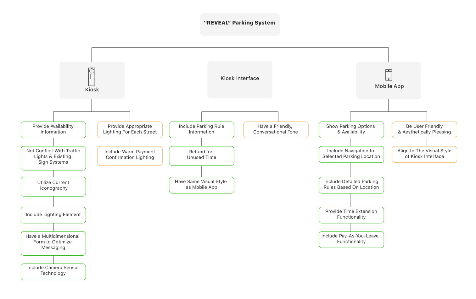 reveal is a parking system designed to make the abundance of parking information more manageable for drivers and residents. The system also explores how parking can be better integrated into densely populated residential neighborhoods.