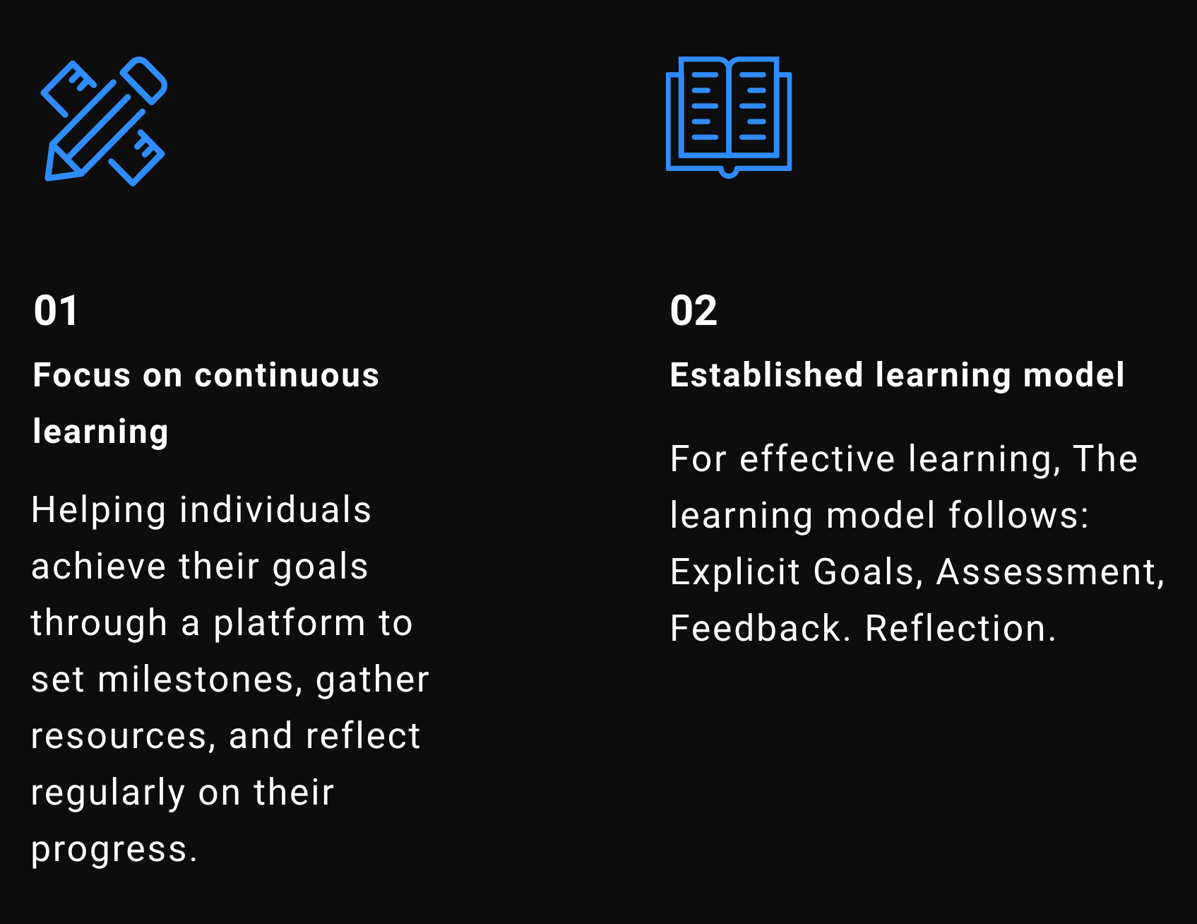 Seam makes use of established soft skills learning models and recognizes that learning does not occur in a waterfall process, but instead one that cycles between establishing goals, assessment, the receiving of feedback, and reflection. The cycle then repeats itself based on what was attained in the last cycle.