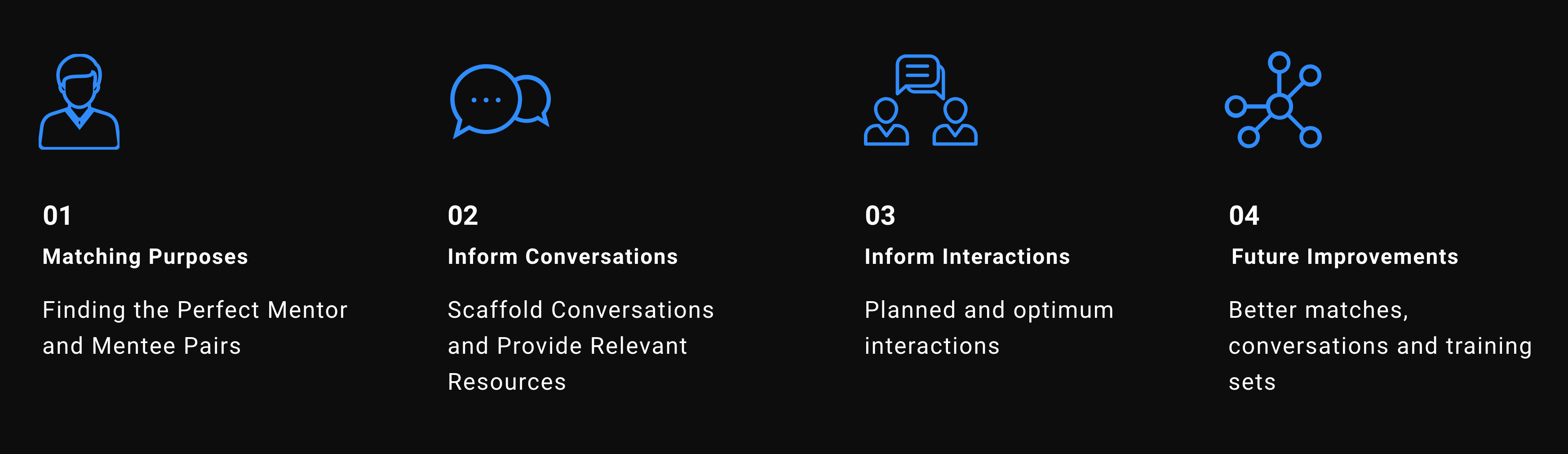 An intelligent mentorship platform that connects students with mentors to bridge the gap between academia and industry, facilitates learning, and encourages lasting human to human relationships.