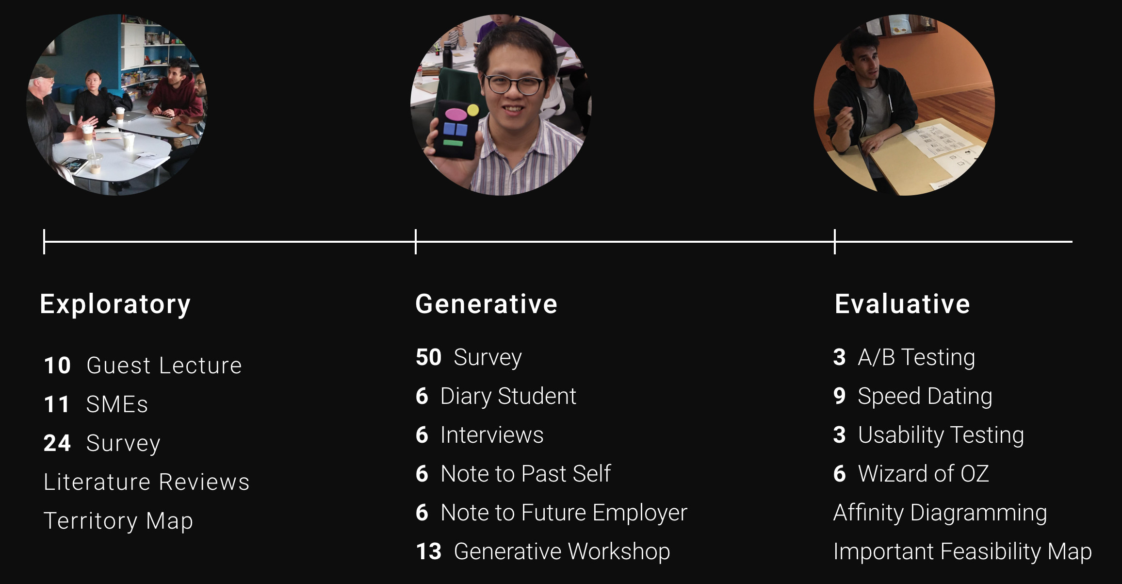 Over the course of the project our team engaged with 45 people including subject matter experts, students, and managers through our exploratory, generative, and evaluative research phases.