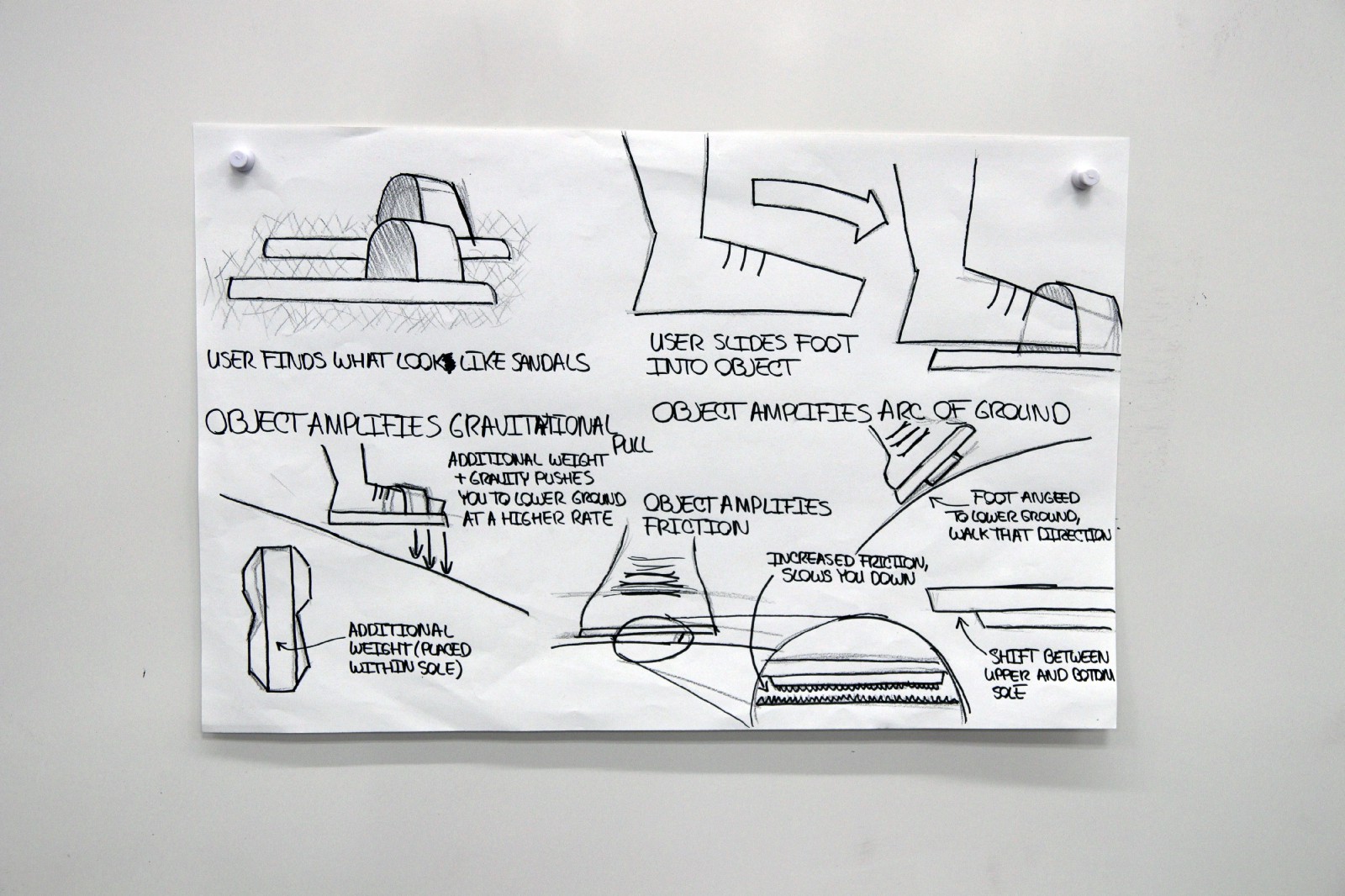 In some sense, the project was flawed from the onset in that it was extremely difficult to make a decent shoe from foam core. This prevented me from running more effective user testing. When testing, it was not uncommon for a user to be worried about breaking the object, which was partly my fault because I asked them to not break it. This made it difficult to entirely explore the possible environments the object could operate in and develop a cavity and elevated pad that best optimized the experience on a variety of terrains.
