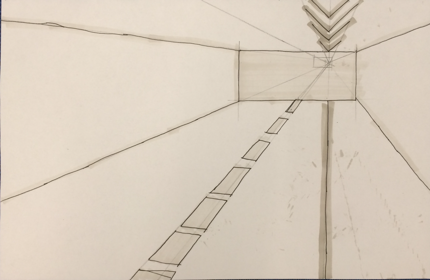A number of considerations were made when designing this system. For instance, I decided to place the arrows on the ceiling and the solid line on the floor to replicate a game, hopefully leading to more path compliance.